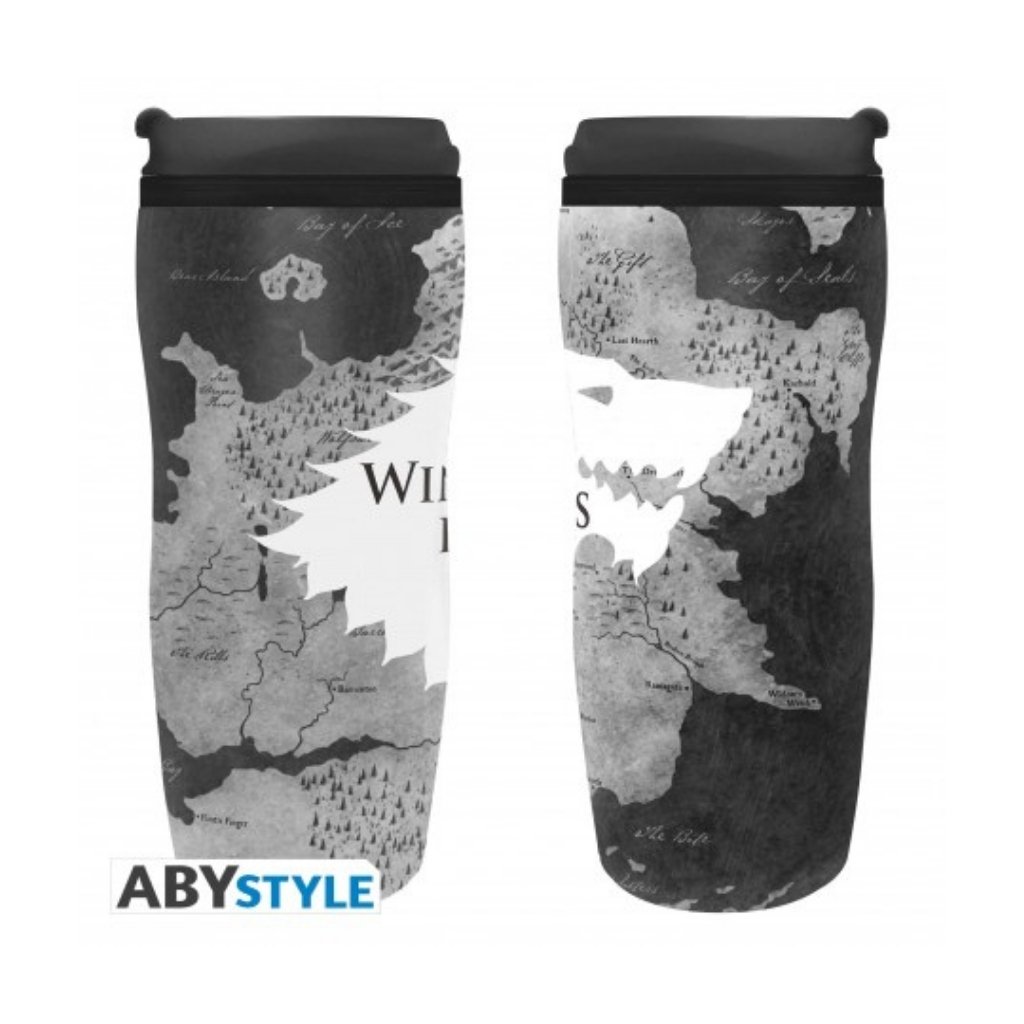En los Siete Reinos nunca sabes qué te espera… pero con esta botella de viaje de Juego de Tronos estarás preparado para todo. Su diseño muestra el mapa de Poniente con el emblema de los Stark y la frase “Winter is Here”, un recordatorio de que el invierno ya ha llegado. Ideal para llevar tu bebida favorita contigo y mantenerte fiel al Norte allá donde vayas.