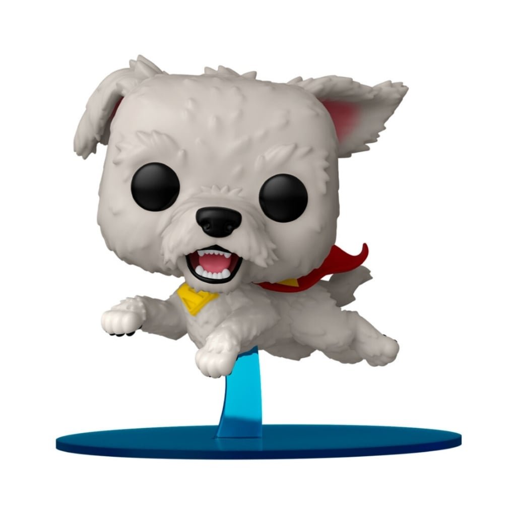 ¡El fiel compañero de Superman llega en forma de Funko Pop! Esta figura de vinilo coleccionable muestra a Krypto en pleno vuelo, con su clásica capa roja ondeando y una gran sonrisa lista para defender la justicia junto a su amo.
