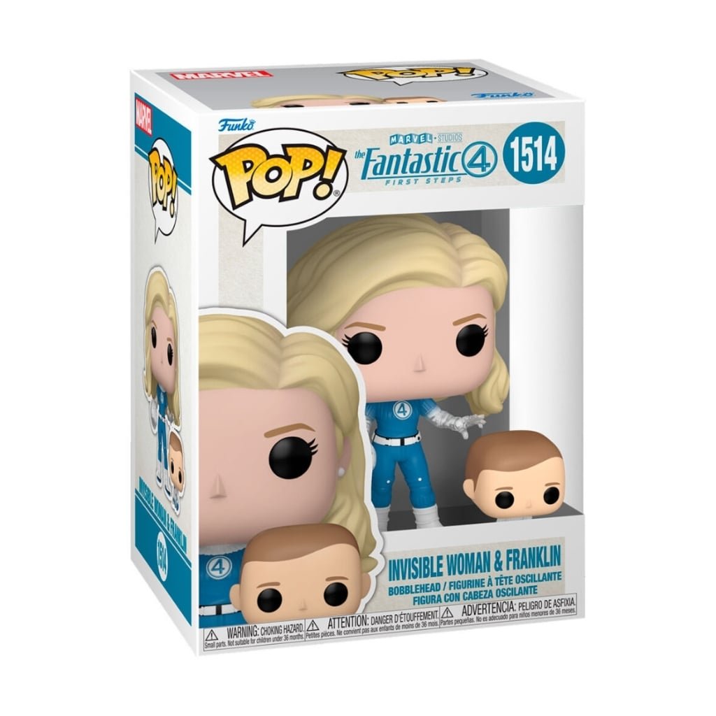 Revive la magia de los 4 Fantásticos con este Pop! de Sue Storm la mujer invisible, acompañada del pequeño baby Franklin. Con detalles cuidados al máximo, como los efectos de invisibilidad en los brazos de Sue y el tierno diseño del bebé, esta figura rinde homenaje a la icónica familia Marvel.