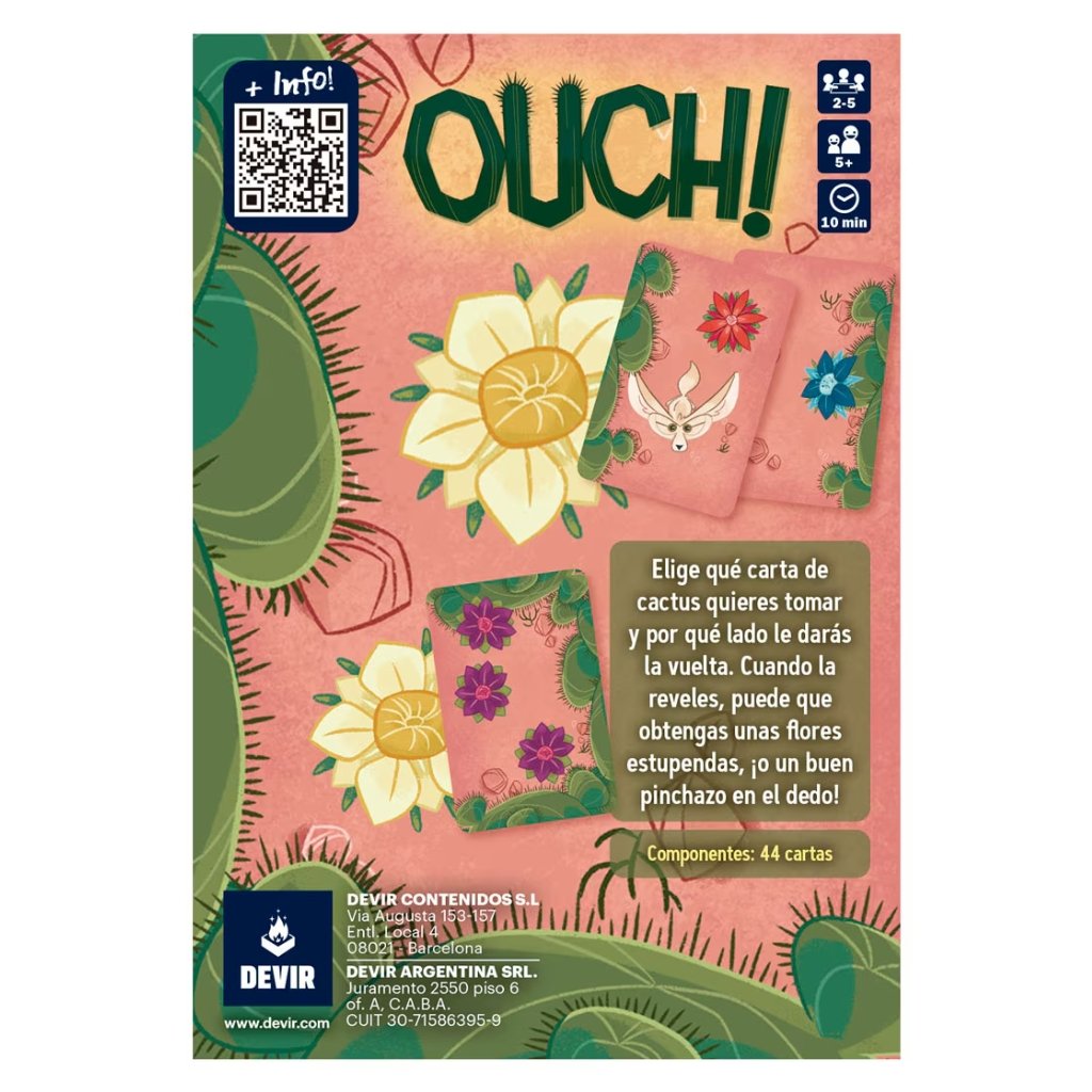 Ouch! (Lata) es un juego de cartas rápido y divertido, donde los jugadores deberán evitar los sustos y hacer frente a sorpresas. Cada carta tiene una acción que puede ayudarte o complicarte la vida. ¡El que se quede con más puntos al final será el ganador! ¡Pero cuidado, cualquier momento puede ser una explosión de diversión!