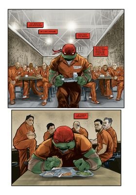 – Donatello, atrapado en un zoológico de mutantes y obligado a pelear para el entretenimiento de millonarios.